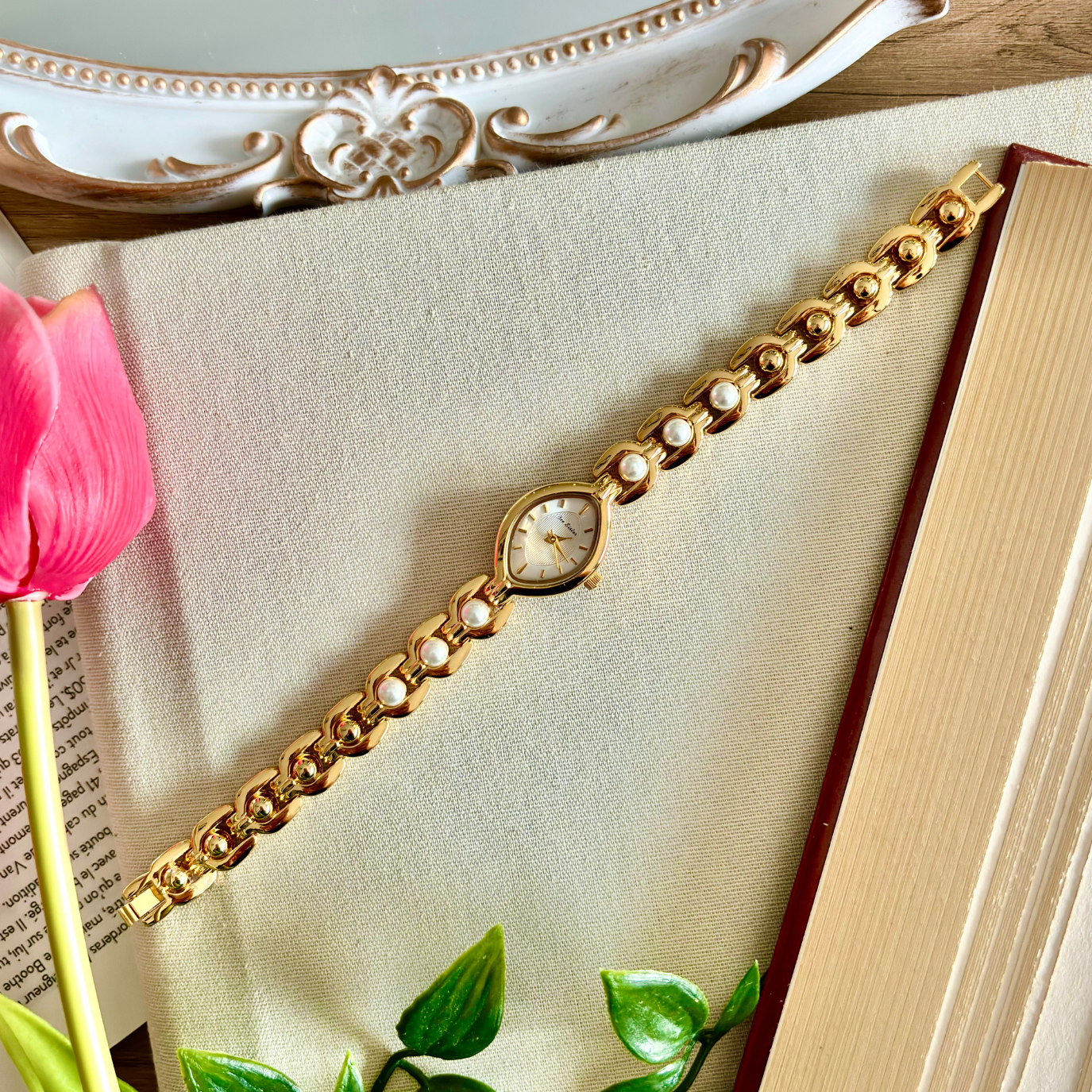 Pensée pour les amoureuses de la beauté classique, Perlora séduit par son allure sophistiquée et intemporelle. Son cadran finement travaillé s’harmonise à un bracelet doré lumineux, créant une silhouette élégante, parfaite pour les instants précieux comme pour les journées éclatantes.