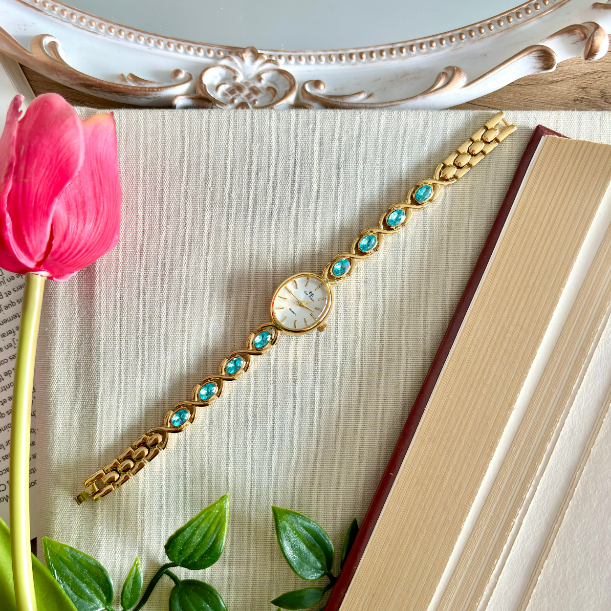 Montre dorée au saphir bleu clair – L’éclat d’un bleu pur